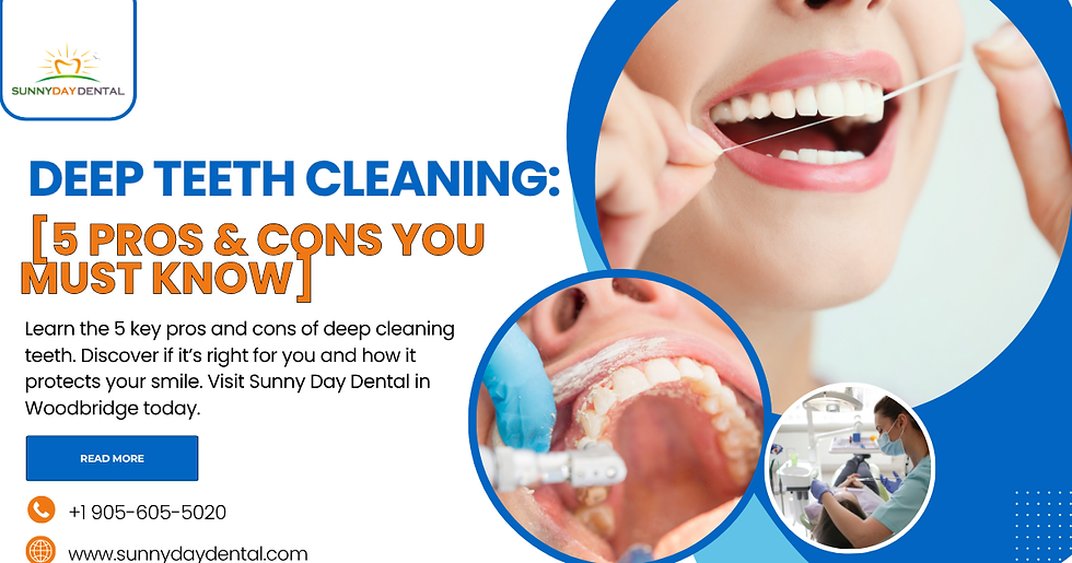 This comprehensive guide will walk you through everything you need to know about deep cleaning—what it is, why it's done, the benefits and drawbacks, and how it differs from a regular cleaning. If you're searching for dental cleaning in Vaughan, Brampton, or teeth cleanings in Woodbridge, this blog is tailor-made for you.